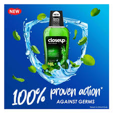 Closeup antibacterial mouthwash is infused with active zinc formula that has 100% proven action against bacteria for whole mouth protection 24/7. Gives natural, long lasting freshness by fighting bad breath. It deep cleans the entire mouth. This mouthwash is gentle on teeth and gums. The mouthwash has no alcohol formulation hence no burning sensation or dryness in mouth.