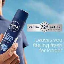 Stay fresh and confident all day with Nivea Cool Kick Deo for Men. This pack includes two bottles, each containing 150 ml of the refreshing deodorant spray. The Cool Kick formula provides long-lasting protection against body odor, keeping you feeling fresh and energized. The invigorating scent combines notes of mint and spices, leaving a cool, masculine fragrance that lasts. The gentle formula is skin-friendly and does not irritate the skin, making it suitable for daily use. Stay cool, stay confident with Nivea Cool Kick Deo for Men. Product Summary 24-hour reliable sweat protection Instantly cooling and refreshing sensation Gentle on the skin, dermatologically tested No alcohol or colorants Leaves no white marks on clothes