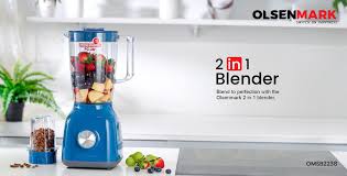Blend to perfection with the Olsenmark 2-in-1 blender. The blender comes with two jarsone large plastic blender jar and a small plastic grinding mill jar. This transparent jar has a capacity of 1.8 liters. The two jars are highly durable and resistant to corrosion. The high-performance stainless steel blades and a powerful motor even grind hard ingredients to the desired consistency while cutting through hard ingredients easily. The blender is used to make milkshakes, fruit juices, and smoothies. The small grinder attachment grinds nuts, coffee beans, seeds, etc. The 2-in-1 blender is made of durable, food-grade material with leak-proof lids and a plastic body. The transparent body allows you to monitor the process inside without opening the lid frequently. The new and sturdy 650-watt motor is long-lasting and high-performing, allowing for continuous grinding of even the toughest ingredients. Thus, operating this blender becomes convenient. Easily regulate the speed as per your preferences with the chrome-plated control panel with 2-speed and pulse settings. Lightweight, ergonomic, and strong handles give a comfortable grip and make it easy to handle. An elegant 2-in-1 blender in blue with a modern design enhances the look of your kitchen countertop. It measures 31.5x15.5x27.5 cm, weighs only 2.14 kg, and comes with a 2-year manufacturer\'s warranty."'