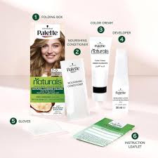 Discover the beauty of naturally radiant hair with Palette Permanent Naturals Color Creme with fruity scented formula Vegan formula contains specially selected nutrient-rich cocoa. Multi-tonal color pigments for a natural looking, rich brown and up to 100% grey coverage. The highly caring Oat Milk Conditioner nourishes your hair from within. A rich, long-lasting color that looks and feels beautifully natural